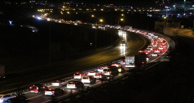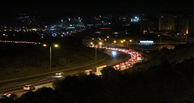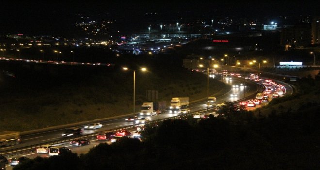9 gün sürecek Kurban Bayramı tatili için memleketlerine doğru yola çıkanlar, TEM Otoyolu Kocaeli kesiminde trafiği zaman zaman durma noktasına getirdi. Dün akşam saatlerinde başlayan trafik, bu akşamda devam etti. TEM Otoyolu İzmit geçişinde uzun kuyruklar oluştu.