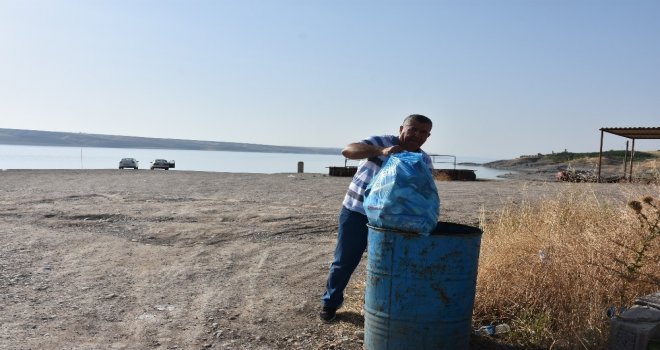 Kahta ilçesinde esnaflık yapan Mehmet Çoban, yaklaşık 3 yıldır Atatürk Barajı kıyısı, mesire alanları ve turistik alanlar başta olmak üzere gittiği her yerde temizlik yaparak insanlığa örnek oluyor.