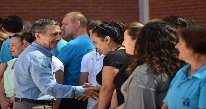 Tepebaşı Belediye Başkanı Dt. Ahmet Ataç; belediyenin Temizlik İşleri Şantiyesi, Fen İşleri Şantiyesi ve hizmet binasında çalışan belediye personeli ile bir araya gelerek yaklaşan Kurban Bayramını tebrik etti.