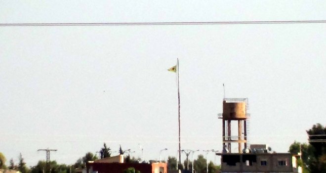 Terör örgütü PYD/YPG, Suriyenin Telabyad ilçesinde asılı olan sözde bayrağını indirip flamasını astı.