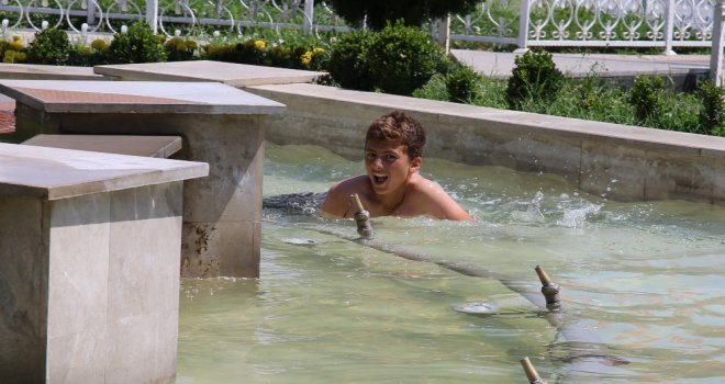 Kentte son iki gündür mevsim normallerinin üzerinde seyreden sıcak havalardan en çok etkilenenler arasında çocuklar da bulunuyor. Sıcak havalarda çocuklar tehlikeli olmasına rağmen süs havuzlarına girerek serinlemeye çalışıyor. Hastalanma ve elektrik çarpma riski başta olmak üzere bir çok tehlikeye ve tüm uyarılara rağmen suya girmeye devam eden çocuklar, yetkililerin müdahalesiyle süs havuzlarından çıkarılıyor.