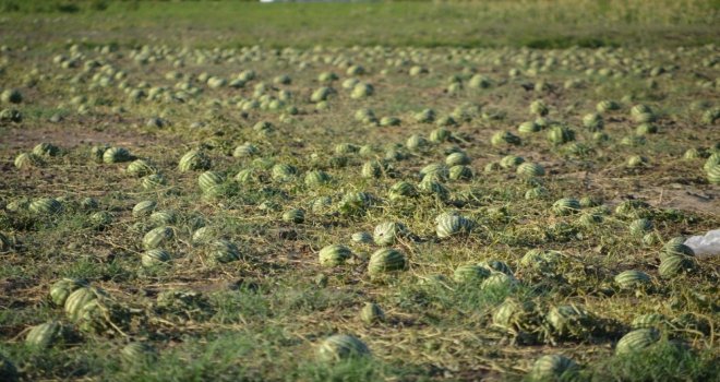 Tonlarca Karpuz Dolu Nedeniyle Zarar Gördü