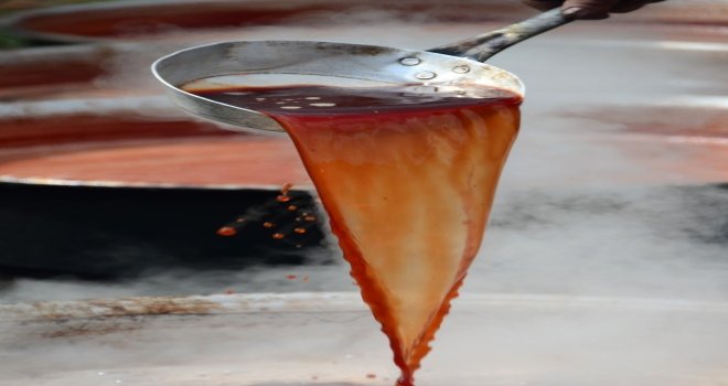 Uzun yıllardır pekmez üreten Erdoğan, Andız pekmezini yapmak üzüm pekmezinden daha zahmetli bir iştir. Yaklaşık 5 kilogram andız kozalağından 1 kilogram pekmez çıkarabiliyoruz. Yılda ise yaklaşık 2 ton pekmez üretiyorum dedi.