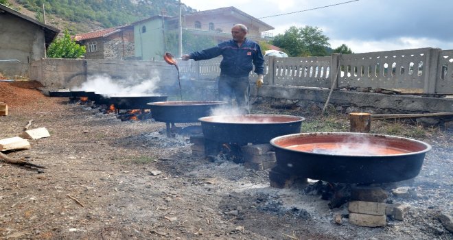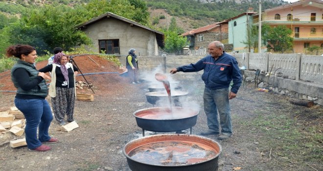 Kuyucak Mahallesinde yıllardır pekmez yaparak aile bütçesine katkı sağlayan kadınlardan Fatma Duran, dağlarda ağaçlara tırmanarak topladıkları andız kozalaklarını, çuvallarla sırtlarında taşıdıklarını söyledi.