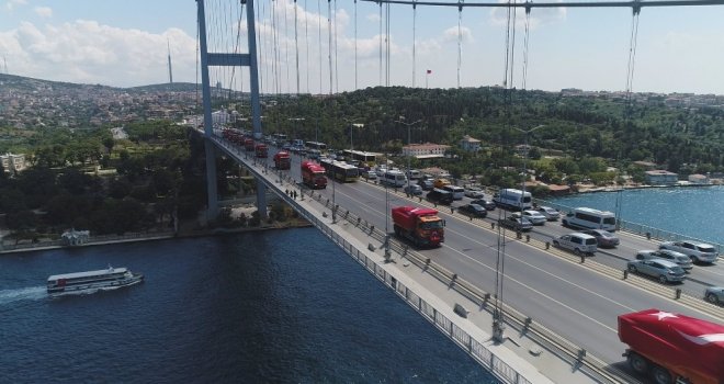 Trafiğe Kapatılan 15 Temmuz Şehitler Köprüsü Havadan Görüntülendi
