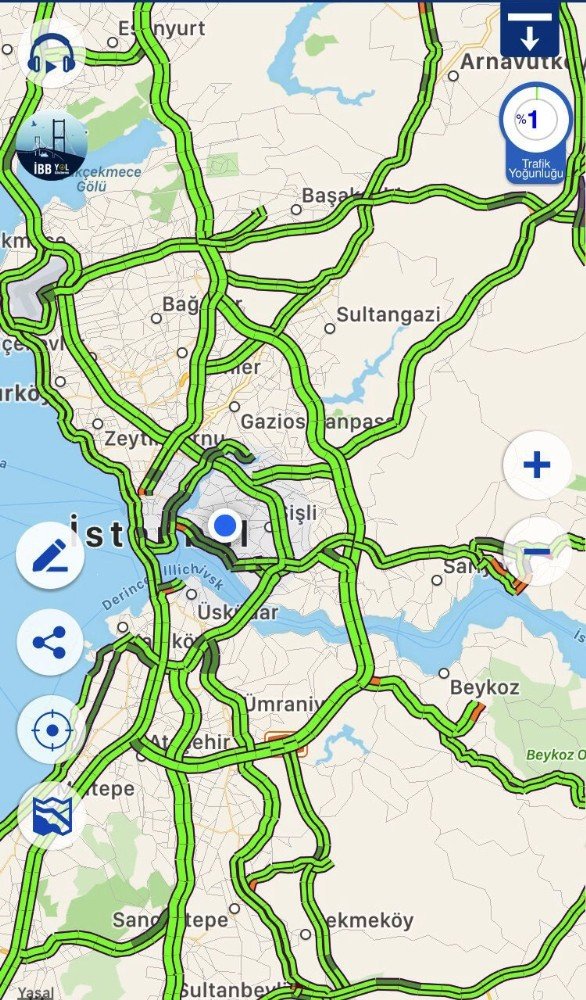 Genellikle hafta başlarında yoğun olarak görmeye alışık olduğumuz İstanbul trafiği sabah saatlerinde İstanbul Büyükşehir Belediyesi (İBB) trafik uygulamasında yüzde 1 olarak görüldü. Trafiğin bu durumu şaşırtıcı bir manzara oluşturdu. Yolların dolu olmasına alışkın olunan İstanbulda trafik rahat bir nefes aldı. Özellikle ana arterlerde E-5 karayolu ve TEM Otoyolu trafiğinin de boş olduğu görüldü.