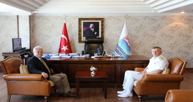 Deniz Kuvvetleri Teknik Başkanlığına atanan Aksaz Deniz Üs Komutanı Tuğamiral İlker Özkan, yeni görev yerine gitmeden önce gerçekleştirdiği veda ziyaretleri kapsamında Belediye Başkanı Ali Acarın konuğu oldu.