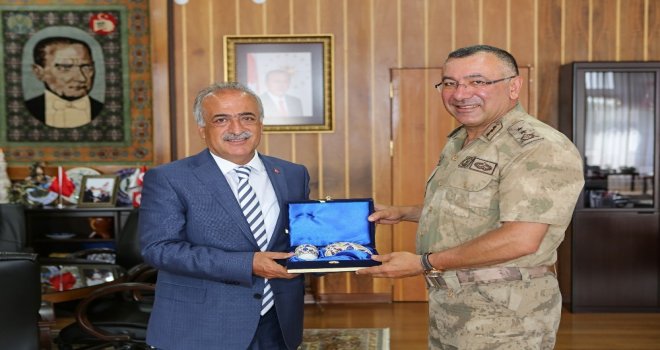 Atatürk Üniversitesi Rektörü Prof. Dr. Ömer Çomaklı, emekliye ayrılan Jandarma Bölge Komutanı Tümgeneral Dr. Güray Alparı makamında ağırladı.