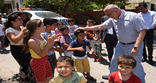 Samimi bir ortamda gerçekleşen ziyarette vatandaşlarla sohbet ederek taleplerini de dinleyen Başkan Ergün, mahalledeki çocukları da unutmadı. Çocuklarla tek tek ilgilenen Başkan Ergün miniklere top hediye etti.