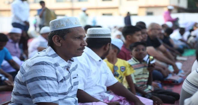 Bayramın Türkiyeden bir gün sonra kutlandığı Sri Lankada binlerce Müslümanın sabahın ilk saatleri ile doldurduğu mescitler ve sokaklara kurulan namaz kılma alanlarında bayram namazının kılınmasıyla kurban kesme işlemleri başladı.
