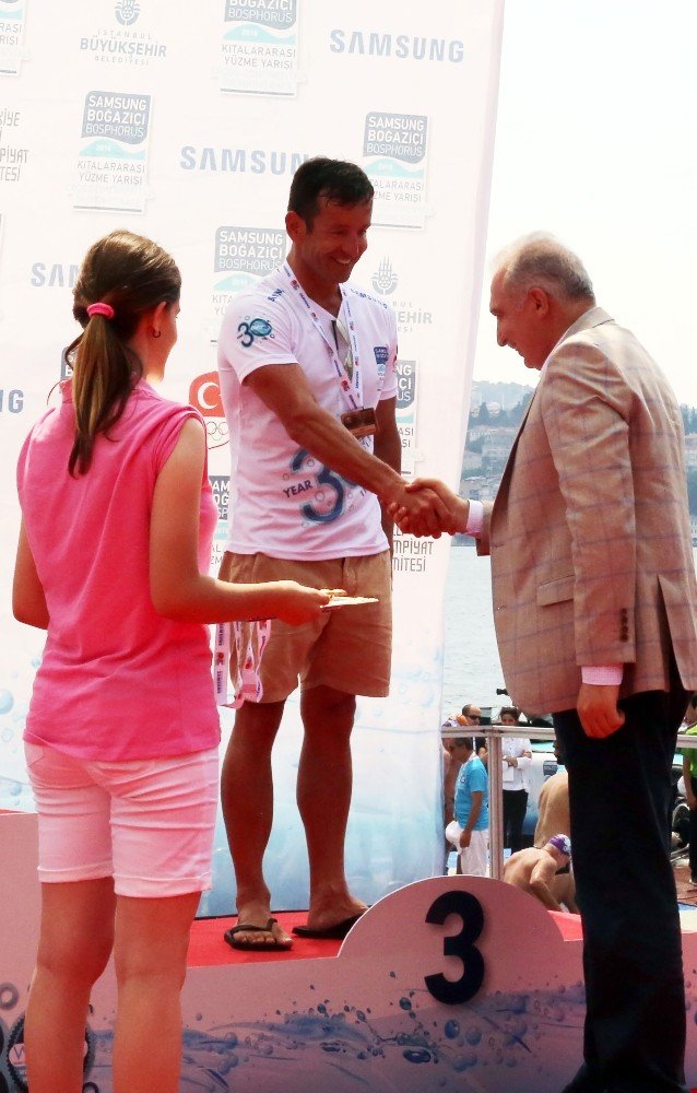 İstanbul Büyükşehir Belediyesinin desteğiyle, Türkiye Milli Olimpiyat Komitesi tarafından Samsung Boğaziçi Kıtalararası Yüzme Yarışının bu yıl 30uncusu düzenlendi. Zorlu yarıştan sonra sporculara ödüllerini veren İstanbul Belediye Başkanı Mevlüt Uysal, “Bu organizasyonun dünyada eşi benzeri yok. Hem İstanbulumuz hem de ülkemizin tanıtımı adına çok büyük bir organizasyon. Gelecek sene çok daha iyi bir organizasyonla burada olacağız” dedi.