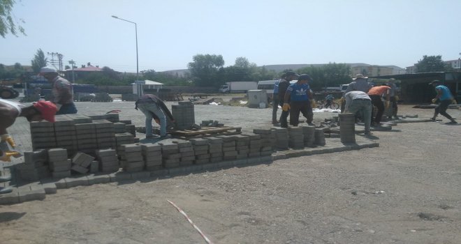 Iğdırın Tuzluca İlçesinde kilit parke taşı döşeme çalışmaları devam ediyor.