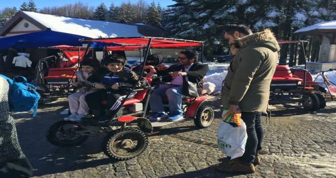 Kış turizminin gözde merkezlerinden Uludağa kar yağması yüzleri güldürdü. Bilhassa Arap turistlerin akın ettiği Uludağda ATVler yerini elektrikli bisikletlere bıraktı.
