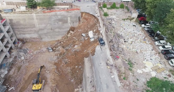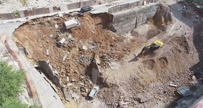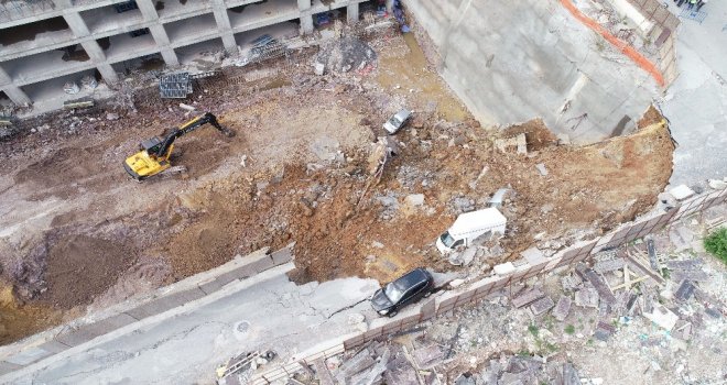 Ümraniyede Çöken İstinat Duvarı Havadan Görüntülendi
