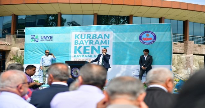 Ünye Belediyesi Atatürk Parkı Sosyal Tesislerinde gerçekleştirilen bayramlaşma programında konuşan Ünye Belediye Başkanı Ahmet Çamyar, “Sınıf farkı ya da görev farkı gözetmeksizin her bir kardeşimizi burada bir arada olmak suretiyle yakınlaşmış ve bayramımızı kutlamış oluyoruz. Bizler burada böyle kenetlenirsek, Ordu böyle olur, Türkiye böyle olur, velhasıl Dünyanın öbür ucundaki mağdur ve mazlumlara tek yürek şeklinde ses ve nefes oluruz. O yüzden birlik ve beraberlik çok önemlidir. Kurban Bayramı paylaşmak ve yakınlaşmak demektir. Bu nedenle Kurbanı bizler kendimiz için değil başkaları için yaşamalıyız. Türkiye çok hassas bir dönemden geçiyor. Bizler bu birlik ve beraberliğimiz sayesinde dün Kurtuluş savaşında, 15 Temmuzda yedi düvele karşı millet ruhunu dimdik durarak ortaya koyan bir anlayışın mensuplarıyız dedi.