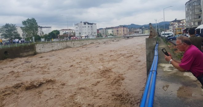 Ordunun yüksek kesimlerinde etkili olan sağanak, derelerin debisini yükseltti. Dün Cevizdere Irmağının taşarak afete yol açmasının ardından Tabakhane Deresi de taşma noktasına geldi. Debisi yükselen dere, şehri tehdit etmeye başladı. Derede su seviyesi köprülere değme noktasına geldi. Ünye Belediyesi, taşkın riskine karşı çevredeki vatandaşları uyarıyor.