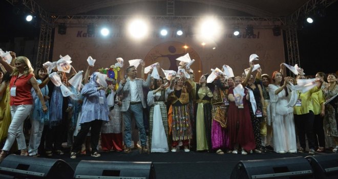 Gecede, ayrıca, Başkan Uysal, Leman Sama teşekkür çiçeği takdim ederken Türkiyenin farklı noktalarından gelerek festivale katılan kooperatifin üyeleri bir sürprize imza attı. Bazıları yöresel kıyafetleriyle sahneye çıkan kadınlar, Başkan Uysal ve Leman Samla birlikte, 1 Eylül Dünya Barış Günü için sahnede ‘Sev kardeşim isimli şarkıyı seslendirdi.