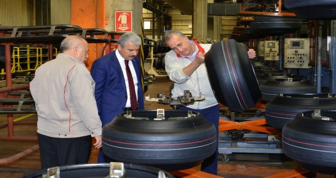 Ziyaretinde Petlas A.Ş. Yönetim Kurulu Başkanı Mustafa Özcan, tarafından karşılanan Vali İbrahim Akın, fabrikayı gezerek bilgiler aldı.