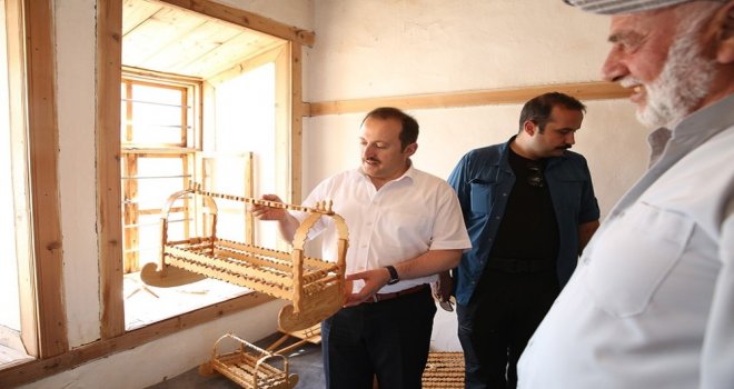 Vali Pehlivan, uzun yıllar yurt dışında yaşadıktan sonra doğduğu topraklara dönüp geçmişe duyduğu özlemi gündelik eşyalar ve tarım aletlerinin minyatürlerini yaparak gidermeye çalışan Erkovanın evinin bir bölümünde sergilediği eserleri inceledi. İlerleyen yaşına rağmen evinin farklı bir kısmında kurduğu marangozhanede üretime devam eden Erkovan, Vali Pehlivana yaptığı çalışmalar hakkında bilgiler verdi.