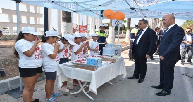 Fenerbahçe Meydanında katıldığı yol uygulamasının ardından Erdemli ilçesine geçen Vali Ali İhsan Su, Ayaşta yapılan trafik denetimine katılarak, Hatalı sürücüye kırmızı düdük kampanyası kapsamında çocuklara çeşitli hediyeler dağıttı.