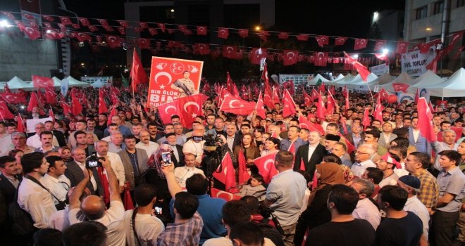 Yapılan konuşmaların ardından İstanbuldan gelen 15 Temmuz gazileri, vatandaşı selamladı. Gece, tüm camilerde okunan sela ile devam etti.