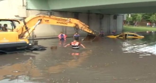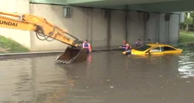 Şiddetli yağış nedeniyle sular altında kalan Vatan Caddesinde dev rögar kapakları açılarak sular tahliye edildi. Sel suları altında kalan çok sayıda araç ve tamamen suya gömülen ticari taksi iş makineleriyle kurtarıldı.