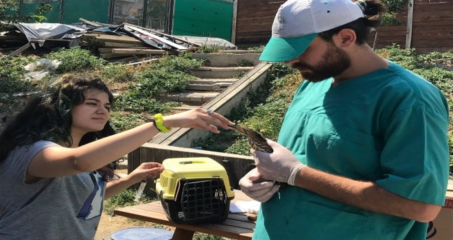 Kırklarelinde vatandaşlar tarafından bulunan balaban kuşu, yapılan kontrollerin ardından doğal yaşamına bırakıldı.