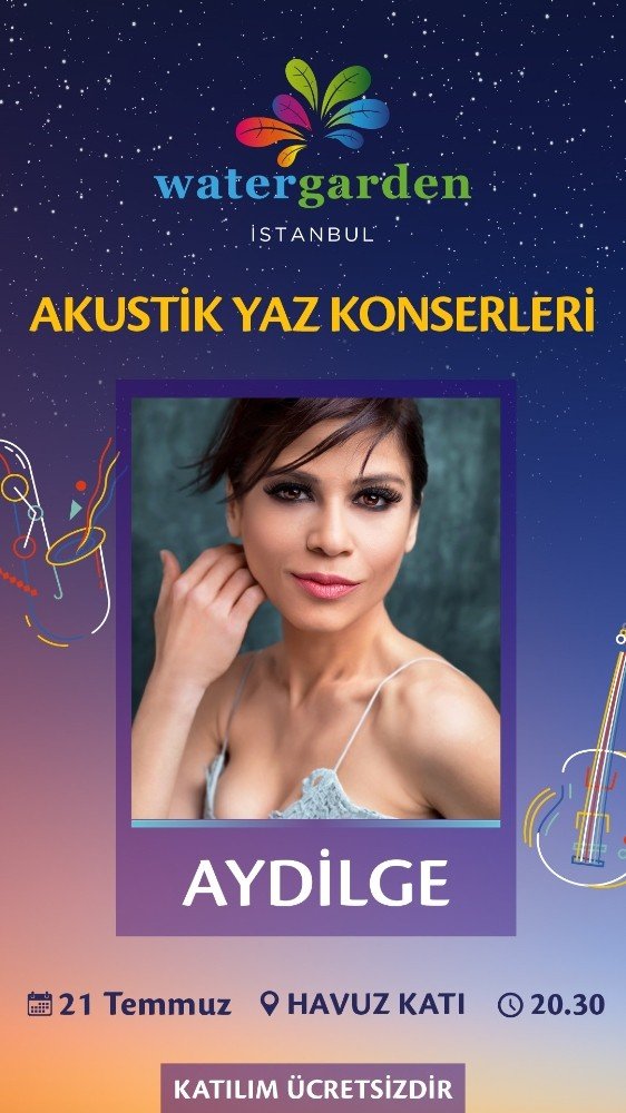 Watergarden İstanbulda Akustik Yaz Konserleri kapsamında pop müziğin sevilen isimlerinden Aydilge sahne alacak.