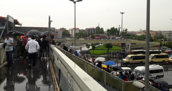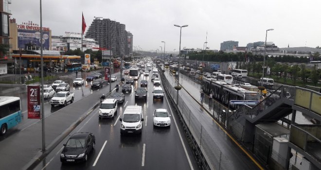 İstanbulda dün akşam saatlerinde başlayan şiddetli yağış mesainin ilk anlarında da devam ederken, yağmur nedeniyle sabah trafiği olumsuz etkilendi.