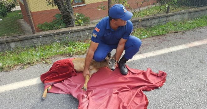Sakaryanın Karapürçek ilçesinde yaralı karacaya jandarma yardım etti.