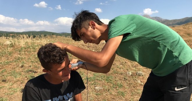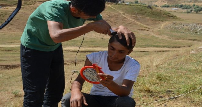 Hayvanları otlatmak için yaylaya çıktıklarını hatırlatan Erhan Ay, Yaz aylarında hayvan otlatmak için yaylaya geliyoruz. Burada da imkanlar kısıtlı, elektrik yok. Kardeşlerimi, arkadaşlarımı tıraş ediyorum. Burada güneş enerjisiyle elektrik üretiyoruz. İmkanlar kısıtlı ve bizde hayvancılıkla uğraşıyoruz, tarımla uğraşıyoruz. Yaylada yaklaşık olarak 20-25 çadır var. Çoğu hayvancılık için geliyor. Diyarbakırda yaz ayları kurak olduğu için hayvanları burada otlatmak için geliyoruz. Berberliği kendim öğrendim. Kardeşlerimi, akrabalarımı, buradaki çocukları tıraş ede ede öğrendim. Buradaki çocukların tamamını neredeyse tıraş ediyorum. Her ailede 7-8 çocuk varsa, 4-5i erkektir. Yani 10 aileden yaklaşık 40-50 çocuğu tıraş ediyorum. Bu çocukları tıraş ederken de herhangi bir ücret talep etmiyorum. Öğrenciyim, kamu yönetimi bölümü okuyorum. Birinci yılı bitirdim, bu yıl da sınava girdim. Bizler yaylada genelde 18 yaşından büyükler pek evde kalmayız, çünkü iş yok batı tarafına işe gideriz. Burada da hayvancılık ve bahçe işi yapıyoruz dedi.