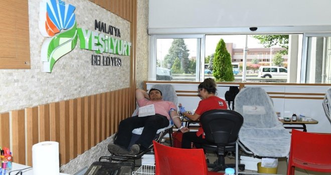Yeşilyurt Belediyesi hizmet binasında kurulan ünitede düzenlenen kan bağışı kampanyasına belediye personelleri yoğun ilgi gösterdi.