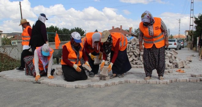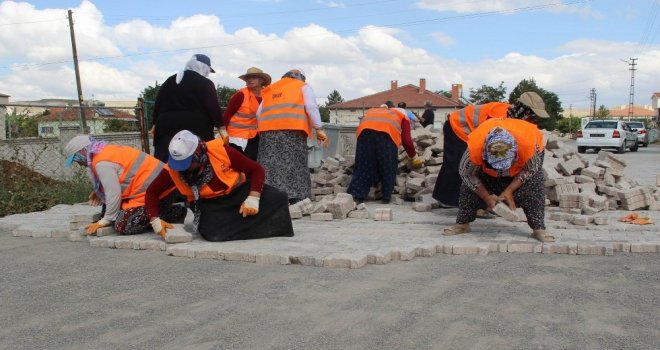 Sivasın Şarkışla ilçesine bağlı Cemel beldesinde yaşayan kadınlar, erkeklerin yapamazsınız sözlerine aldırış etmeden beldenin sokaklarını dantel gibi işleyerek kilit parke taşıyla güzelleştirdi.