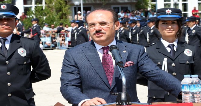 Yozgat POMEM Müdürü Şaban Kütükoğlu ise 21. Dönem Yozgat POMEMde bin 100 polis adayını mezun etmenin haklı gurunu yaşadıklarını söyleyerek “Anne ve babalar, sizler en değerlilerinizi evlatlarınızı bizlere emanet ettiniz. Bizler de emanetlerinize sahip çıktık ve kendi evlatlarımız gibi gördük. Elimizden geldiğince emanetlerinizi Yozgat POMEMde eğittik. 21. Dönem Yozgat POMEM olarak polis devlettir, vatandır, millettir. Düsturuyla devletine, milletine inanan bütün gücünü kanun ve haktan alan tek vatan tek bayrak tek devlet tek millet anlayışıyla pırıl pırıl vatan evladını teşkilatımıza kazandırdık” şeklinde konuştu.