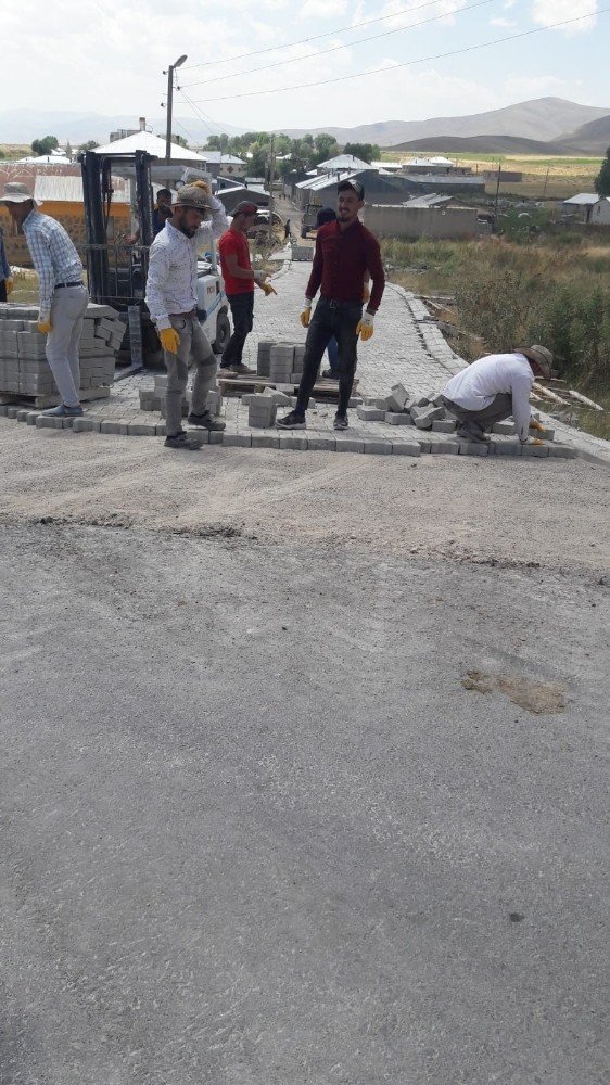 Vanın Çaldıran Belediye Başkanlığı Fen İşleri Müdürlüğünce Tendürek Dağı eteklerindeki Yukarı Yanıktaş Mahallesinde bordürlü kilitli parke taşı yapımına başlandı.