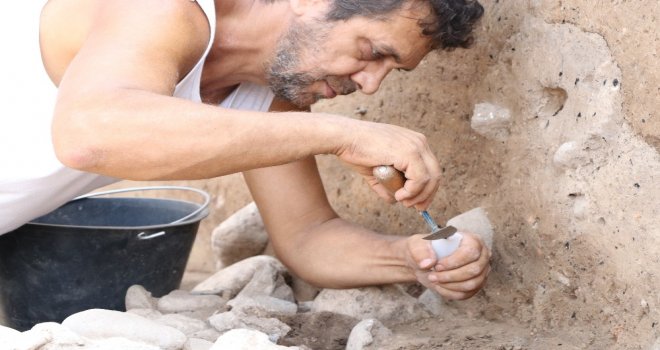 Bu yılki kazıların başında da önemli bir buluntunun ortaya çıktığının altını çizen Caneva, Bir ok ucu bulundu. Obsidyen kullanılarak bu uç yapılmış. Bu da çok özel bir malzeme. Obsidyen burada bulunmayan, İç Anadolu bölgesinden gelen bir malzeme. Bunun M.Ö. 6600 yıllarına ait olduğunu düşünüyoruz. İlk defa tüm olarak çıkıyor. Birde onun yanında en eski çanak, çömleklerden birisi ortaya çıktı. Çok kaliteli bir hamur ve güzel desenli dedi.