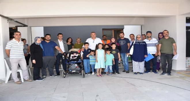 Manisanın Yunusemre ilçesinde hayata geçen 5 bin 500 Konutluk Akgedik Yunuskent Toplu Konut Projesi kapsamında anahtarlarını teslim alan hak sahipleri, evlerine yerleşmeye başladı. Başbakanlık Toplu Konut İdaresi (TOKİ) ortaklığıyla yürütülen projenin bin 101 konuttan oluşan ilk etabında, anahtarlarını teslim alan iş yeri sahipleri de dükkanlarını açmaya başladı. Yunusemre Belediye Başkanı Dr. Mehmet Çerçi, anahtarlarını teslim alarak evlerine yerleşen Remziye ve Ozan Tay çiftine konuk oldu. Başkan Çerçi, Tay çiftini ziyaret ederek kahve içti. Ziyarette aile üyeleri, Yunusemre Belediye Başkanı Dr. Mehmet Çerçiye teşekkür ederek evlerine kavuşmanın verdiği mutluluğu dile getirdi. Başkan Çerçiye ev ziyaretinde Sosyal Konutlar Müdürü Hakan Yılmazbaş da eşlik etti. Başkan Çerçi ziyarette Tay ailesine hat sanatının güzel bir örneği olan ‘Sevelim Sevilelim temalı tablo hediye etti.