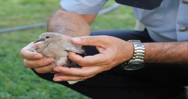 Yuvasından Düşen Yavru Kuşa Polis Şefkati