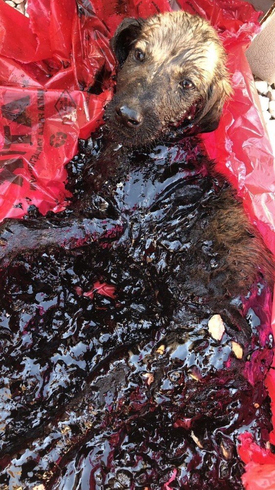 Zifte Bulaşmış Yavru Köpek Veteriner Hekimler Tarafından Temizlendi