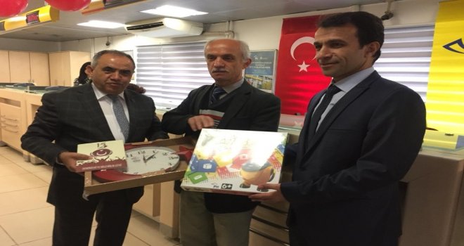 Öte yandan PTTde işlem yaptırmak için 178. sıra numarasını alan İsmail Kiraza çeşitli hediyeler takdim edildi.