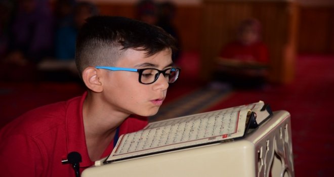 12 yaş altı çocukların katıldığı yarışmada çocuklar, birbirinden güzel sesleriyle izlemeye gelenlere Kuran ziyafeti çektiler.