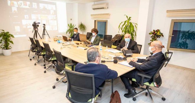 İzmir Ekonomik Kalkınma Koordinasyon Kurulu’nun (İEKKK) 94’üncü toplantısı pandemi önlemleri nedeniyle çevrim içi olarak yapıldı. 30 Ekim depremi sonrası izlenen süreç ve pandeminin sektörlere etkilerinin ele alındığı toplantıda İzmir Büyükşehir Belediye Başkanı Tunç Soyer kurul üyelerine depremle ilgili yürüttükleri çalışmalar hakkında 3 ana başlıkta bilgi verdi.