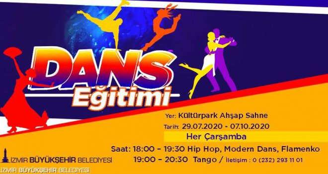 İzmir Büyükşehir Belediyesi’nin dans eğitimleri bugünden itibaren Kültürpark’ta başlıyor.Hip hop, modern dans, flamenko ve tango meraklıları eğitimlerden ücretsiz yararlanabilecek. Dersler 7 Ekim’e kadar sürecek.
