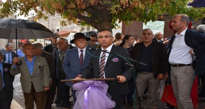 Safranbolunun isminin kökeni ile ilgili iddialar olduğunu ve dönüşüm yaşayarak şu anki ismini aldığını ifade eden Vali Kemal Çeber, Öyle veya böyle Safranbolu ismi bu kente çok yakışıyor ve uyuyor. Çünkü Safranbolu Safrana benziyor. Onun gibi kıymetli, onun gibi narin, onun gibi bakıma, ilgiye ihtiyacı var. Onun gibi alanında dünyanın en kıymetlilerinden. Bu nedenledir ki, hem safrana hem Safranboluya gözümüz gibi bakmalı, korumalı, geliştirmeliyiz. Safranın en uygun yetiştirme ortamının ilçemiz olması da bir şanstır. Bir dönem birkaç yüz metrekareye düşen üretim alanı, gönüllü üreticiler, tarım müdürlüklerimiz ve Şefik Bey gibi Safranbolu sevenlerin gayretleriyle 20 dönümlere kadar çıkmıştır. İki gün önce beraber tarlasını gezdik, hasat ettik, ürünleri tattık, bu etkinlik çerçevesinde de benzer programlar olacak. İnşallah bundan sonra üretim alanımız çok artacak, ekonomik olarak safranın her şeyinden çok daha fazla yararlanacağız. Gün gelecek Ispartanın gül tarlalarına yapılan turistik ziyaretler kadar burada da safran tarlaları gezilecek. Hep beraber gayret edelim ama esas iş Safranbolululara düşüyor. Özellikle çocuklarınıza sevdirin. Her eve bir saksı içinde safran dikelim. Her çocuğun bir safran çiçeği olsun. Onu o büyütsün, ürününü geliştirince de hediyesini verelim diye konuştu.