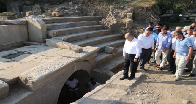 Vali Zülkif Dağlı ve Düzce Belediye Bakanı Dursun Ay Karadenizin Efesi olarak adlandırılan, 1. yüzyılda Konuralp mahallesinde yapıldığı belirtilen antik kentteki tiyatro alanındaki tarihi kazı çalışmalarını yerinde incelediler.