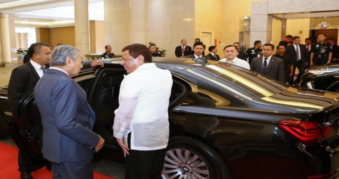 Filipinler Devlet Başkanı Rodrigo Duterte, Malezya Başbakanı Mahathir Muhammed ile bir araya geldi. Başkent Kuala Lumpurda gerçekleştirilen görüşmeye Duterte ile birlikte Dışişleri Bakanı Sekreteri Alan Peter Cayetano, Ulusal Güvenlik Danışmanı Hermogenes Esperon Jr. ve Dutertenin Özel Asistanı Christopher “Bong” Go katıldı. Başbakanlık Ofisinde 1 saat süren görüşmede Filipinler ile Malezya arasındaki ikili ilişkilerin yanı sıra savunma ve güvenlik konusunda işbirliğini güçlendirmek için birlikte çalışmaya karar verildi.