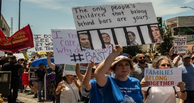 ABDde binlerce kişi, Başkan Donald Trumpın birçok göçmen çocuğun ailelerinden ayrılmasına sebep olan Göçmenlik ve Gümrük Muhafaza (ICE) politikalarını protesto etti.